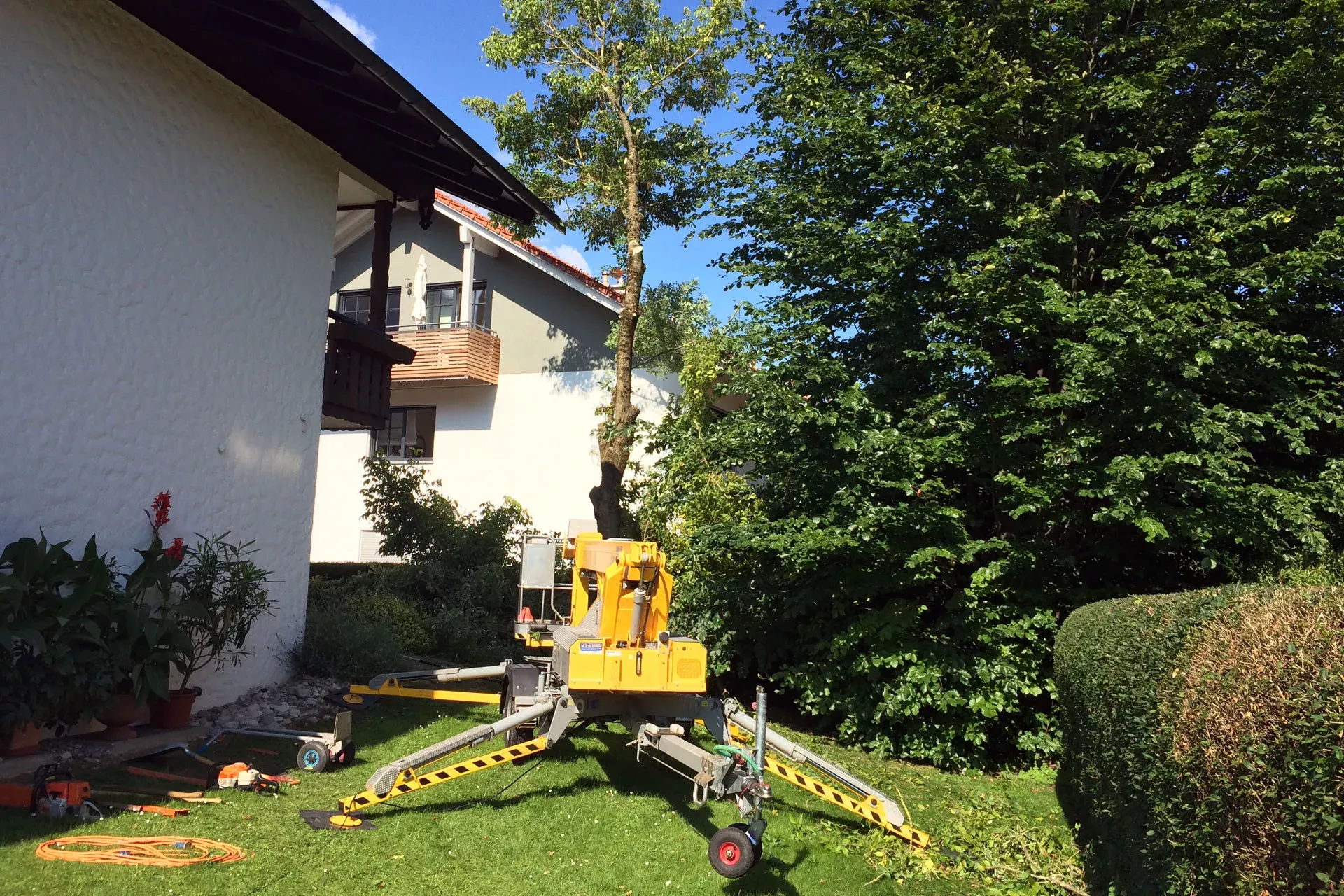 Um optimale Lösungen bieten zu können, stehen uns eine Vielzahl an Maschinen und Geräten zur Verfügung. Wir arbeiten mit speziell ausgebildetem Personal, das auf Kletter-, Hebetechnik und Seiltechnik spezialisiert ist. So können wir Baumrückschnitte und Fällungen auf höchstem Niveau durchführen, auch in schwierigem Gelände.